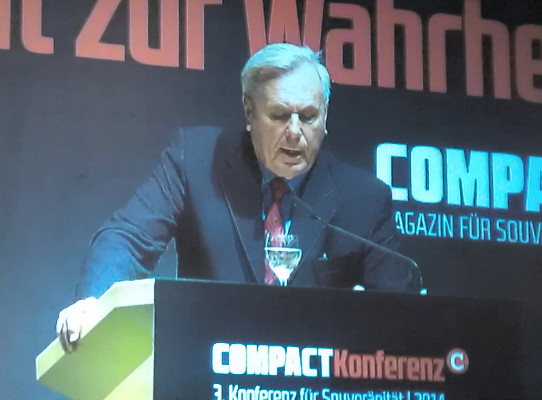 Der Jurist und Staatsrechtler Prof. Dr. Karl Albrecht Schachtschneider referierte über die Begriffe Völkerrecht, Annexion, Sezession und das Selbstbestimmungsrecht der Völker und dass die Krim eine Sezession und keine Annexion erfahren hat. Er erwähnte den Freiheitsbegriff und beklagte, dass die Feindstaatenklausel bislang nicht gestrichen wurde. Er erwähnte den Unterschied zwischen Volk und Staat den man am damals gespaltenen Deutschland erfahren konnte. Es zählt für einen Staat oder eine Sezession allein der Wille des Volkes zur Einheit und ein Sezessionsverbot in einer Verfassung sei rechtswidrig. Dafür brauche es wirkliche Demokratie, die wir allerdings nicht in der EU erleben mit einem Parlament, das keines ist.