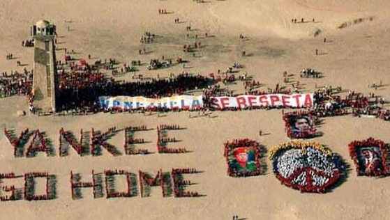 In Venezuela demonstrierten Tausende gegen die US-Sanktionen und erzeugten aus der Luft sichtbare Schriftzüge und Friedenssymbole.