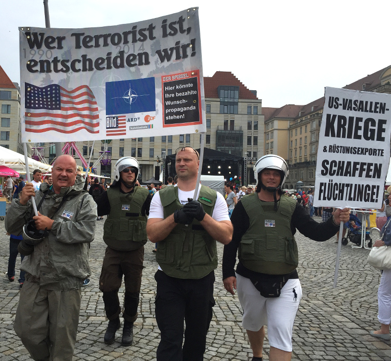 Wir haben in Dresden beim Stadtfest zuerst mit den Bundeswehrsoldaten gesprochen, vor McDonalds und auf den verschiedenen Plätzen des Stadtfestes in Dresden demonstriert.